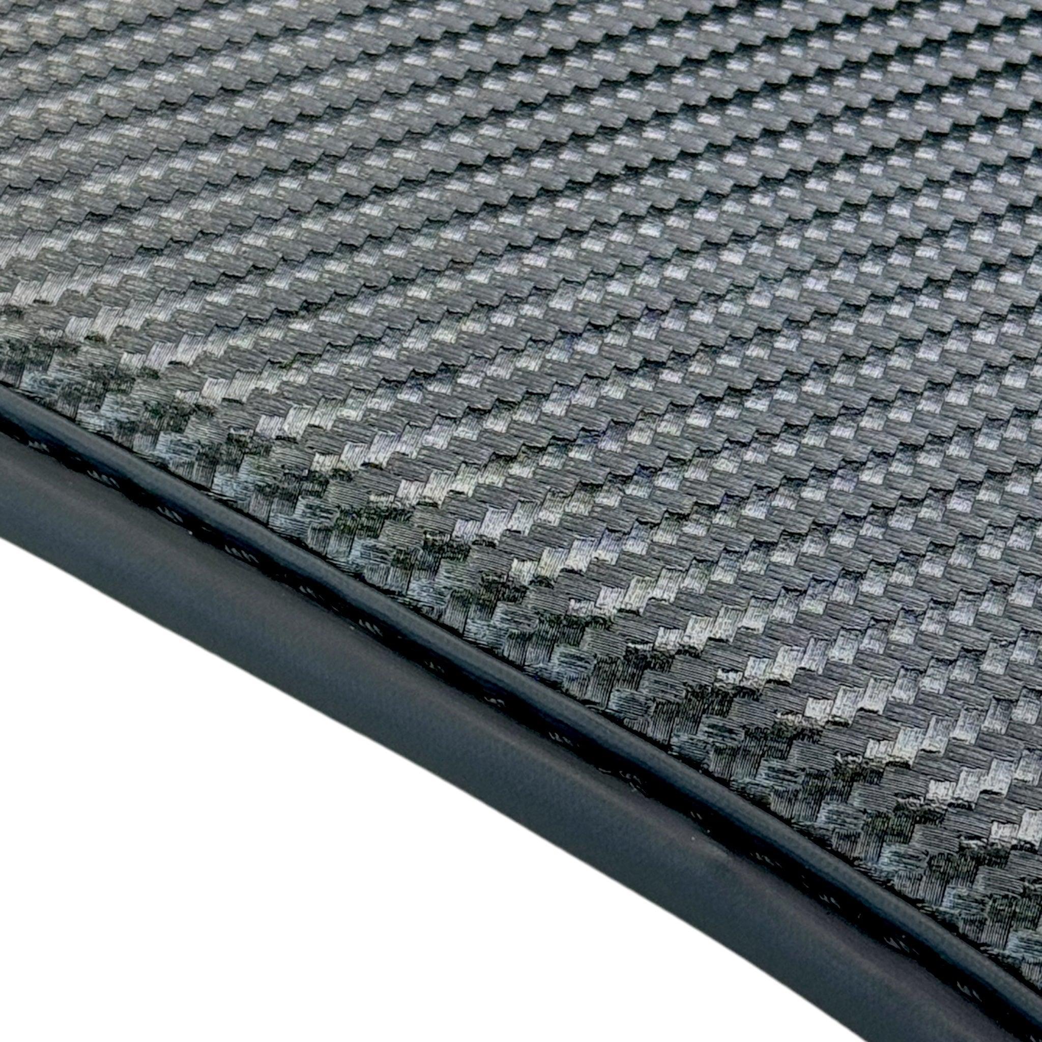 Designed for BMW 5 Series G30, these black carbon mats and German flag by ER56 Design Performance add a sleek and sporty touch to your car's interior. Made with high-quality materials, these mats provide both style and durability. Elevate your driving experience today.