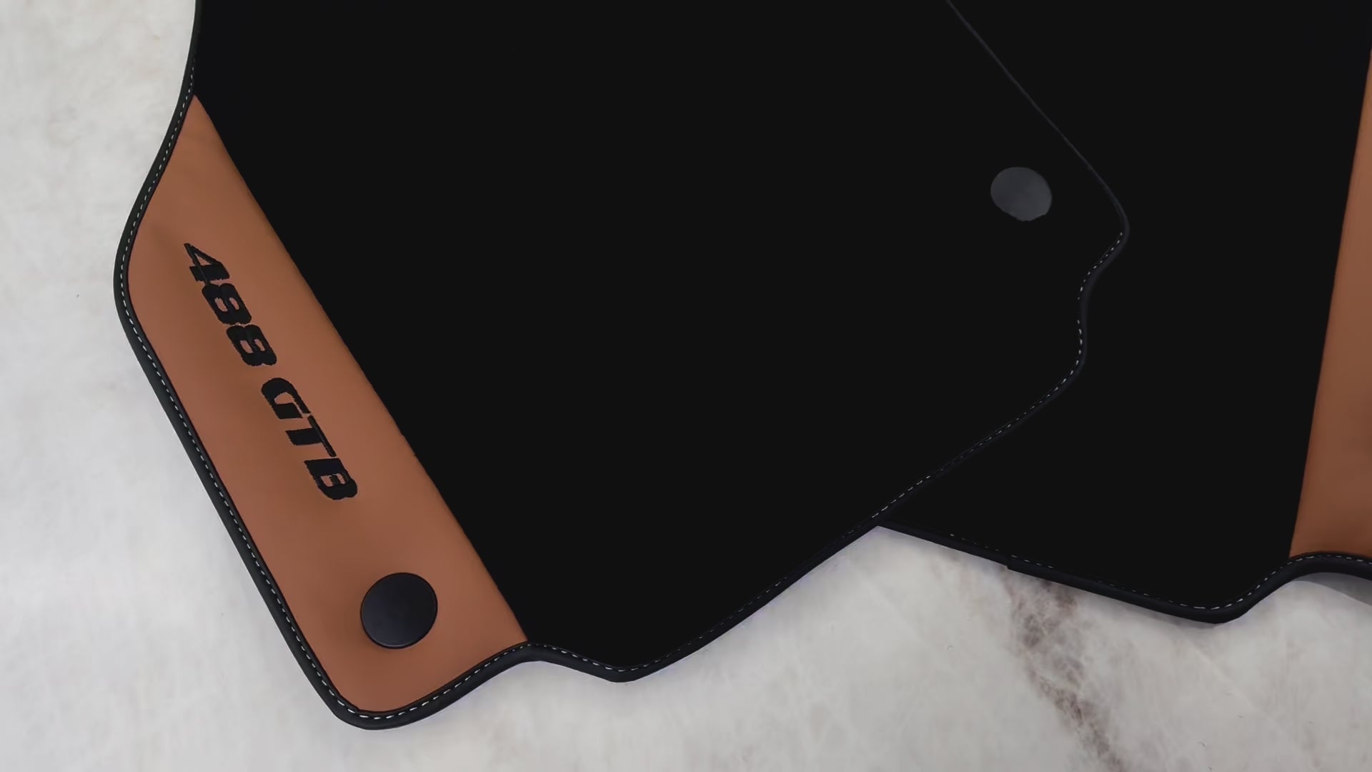 Black Floor Mats for Ferrari 488 GTB (2015-2022) with Cuoio Nappa Leather