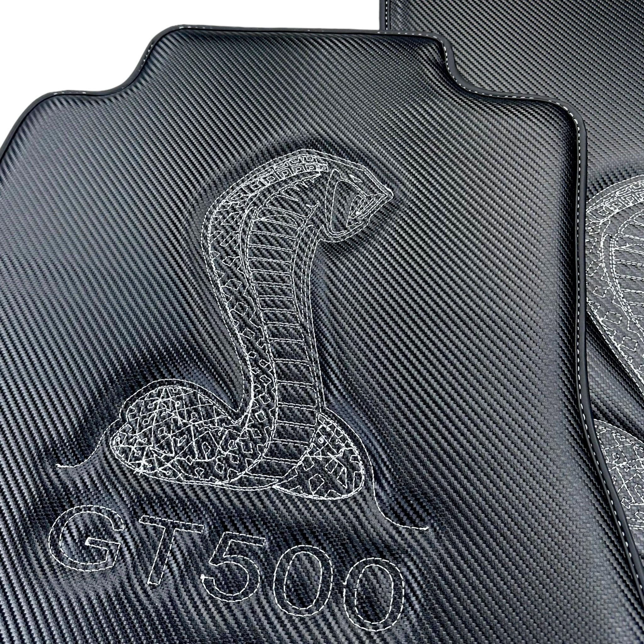 Carbon Fiber Floor Mats for Ford Mustang GT500 Shelby (2015-2021) with Cobra Sewing