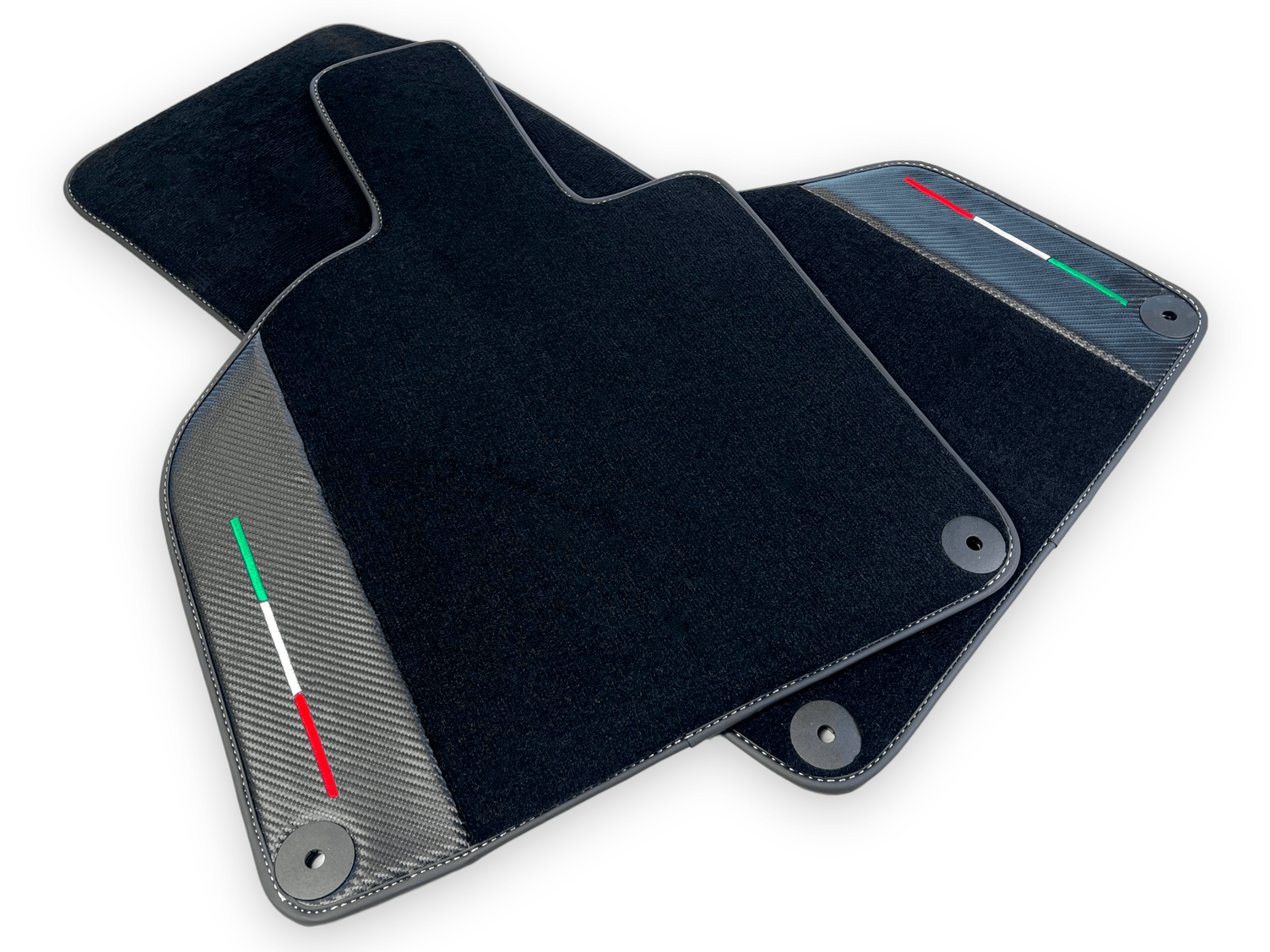 Enhance the interior of your Lamborghini Huracan with our sleek Black Floor Mats. Made with high quality carbon fiber leather with Italian flag, these mats not only provide a luxurious look, but also offer exceptional durability. Elevate your driving experience with these stylish and functional floor mats.