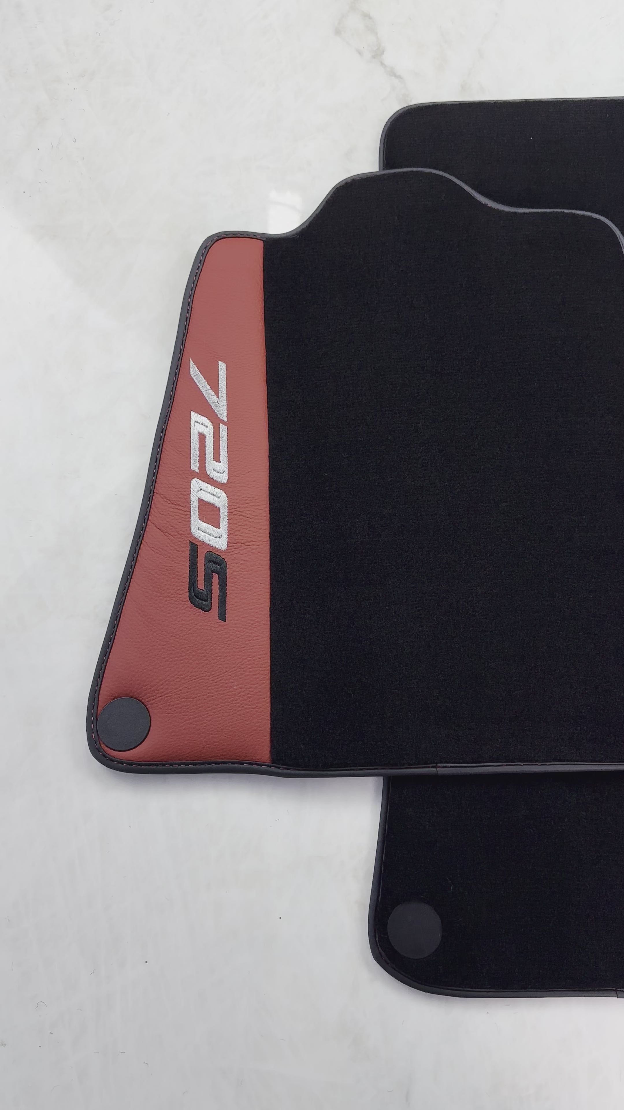 Introducing the Black Floor Mats for McLaren 720S (2017-2021) with red leather. These floor mats not only add a sleek touch to your vehicle's interior, but also provide protection against dirt and wear. Expertly designed and made with high-quality materials, these mats are a must-have for any McLaren enthusiast.