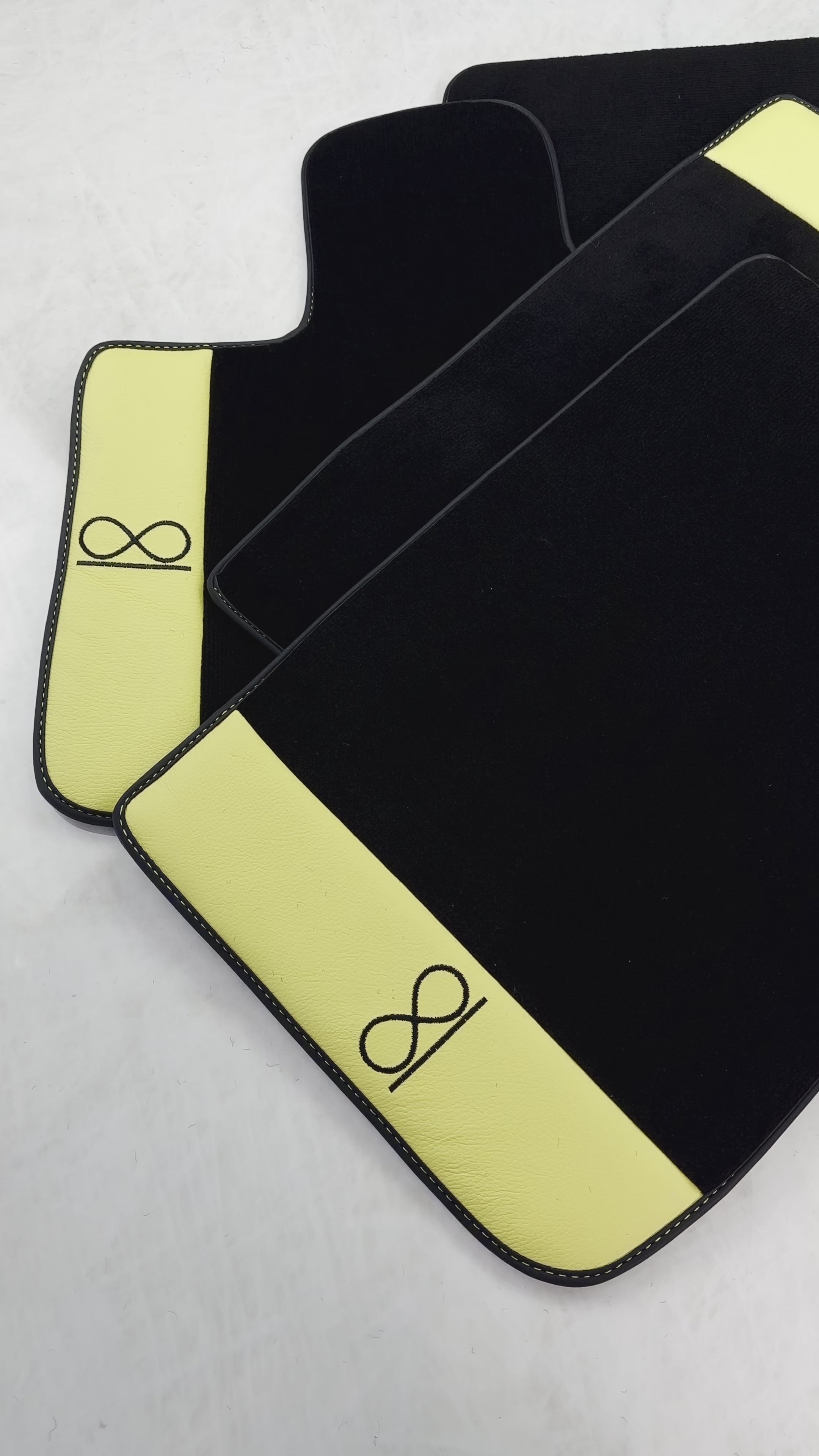 These luxurious black floor mats are designed specifically for the Rolls Royce Black Badge Cullinan, featuring a striking yellow leather detail. Made with premium materials, these mats provide both style and protection for your vehicle's interior. Elevate your driving experience with these elegant floor mats.